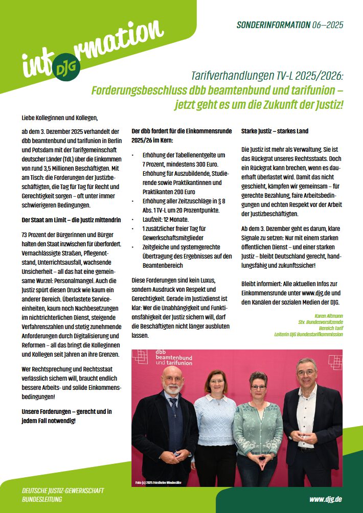 Die DJG-Sonderinformationen erscheinen nach Bedarf und aus aktuellem Anlass. Hier finden Sie die veröffentichten Sonderinformationen.
